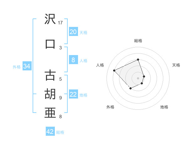 沢口 古胡亜さんを姓名の画数から五運を鑑定