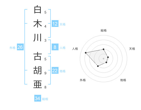 白木川 古胡亜さんを姓名の画数から五運を鑑定