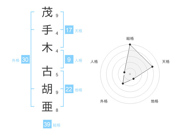 茂手木 古胡亜さんを姓名の画数から五運を鑑定