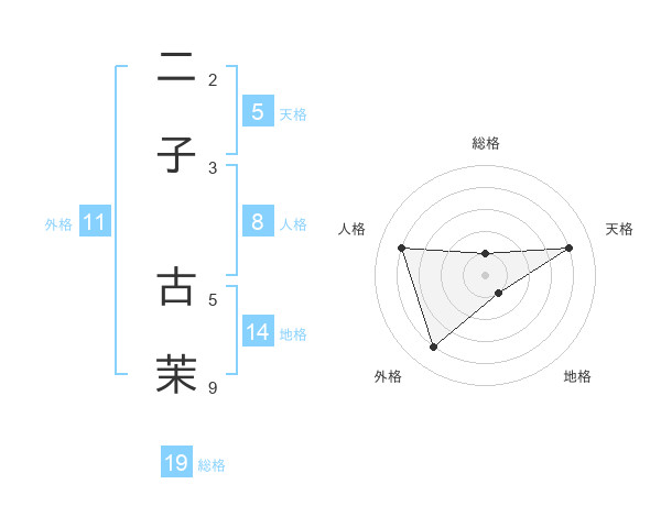 二子 古茉さんの総格は19画の1点!