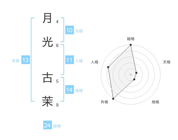 月光 古茉さんの総格は24画の5点!