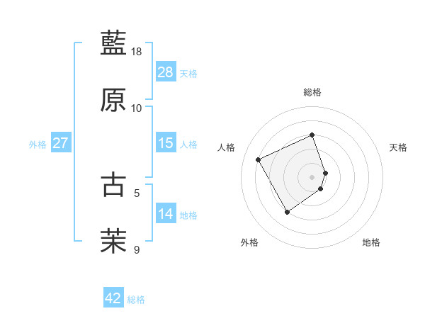 藍原 古茉さんの総格は42画の3点!