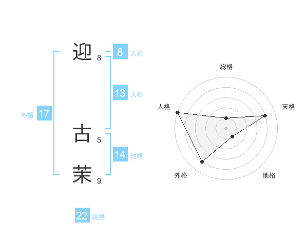 迎 古茉さんの外格は17画の4点!