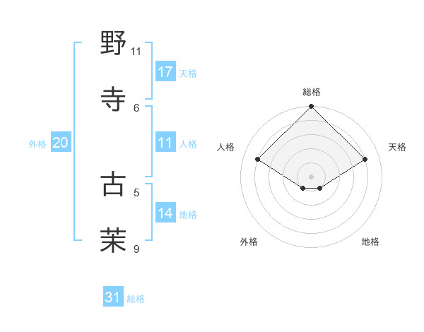 野寺 古茉さんの総格は31画の5点!