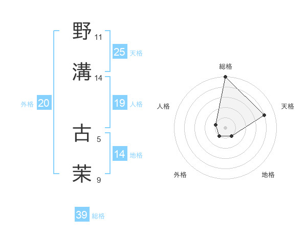 野溝 古茉さんの外格は20画の1点!