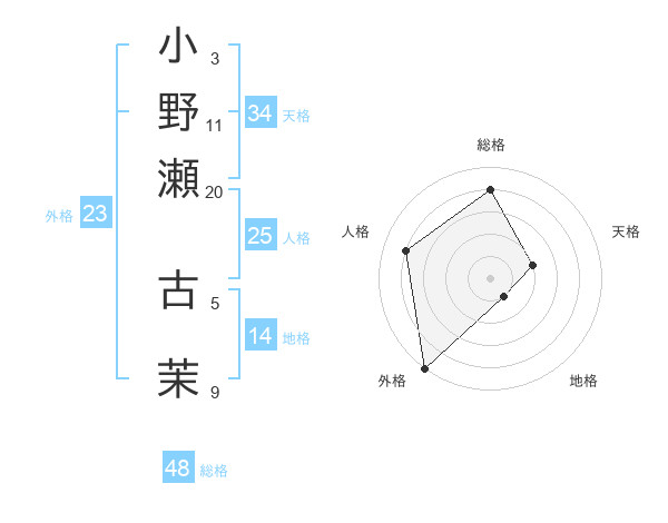 小野瀬 古茉さんの総格は48画の4点