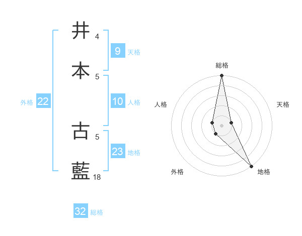 井本 古藍さんの総格は32画の5点!