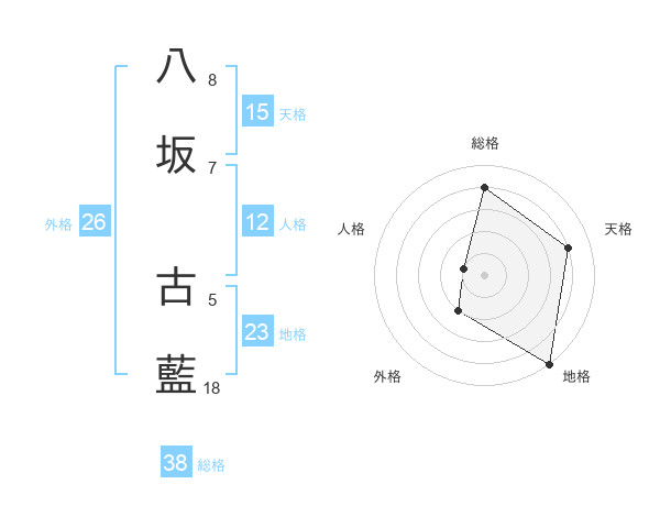 八坂 古藍さんの総格は38画の4点!