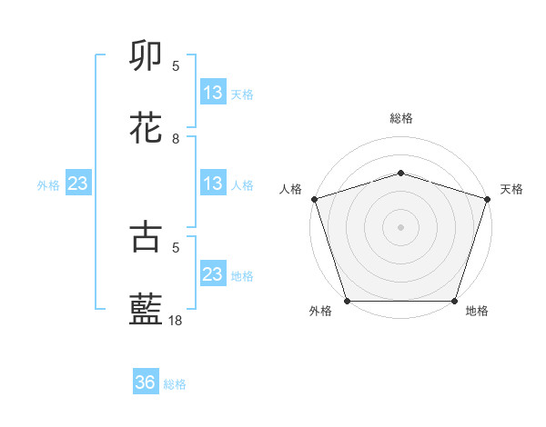 卯花 古藍さんの天格は13画の5点!