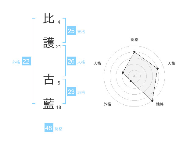 比護 古藍さんの天格は25画の4点!