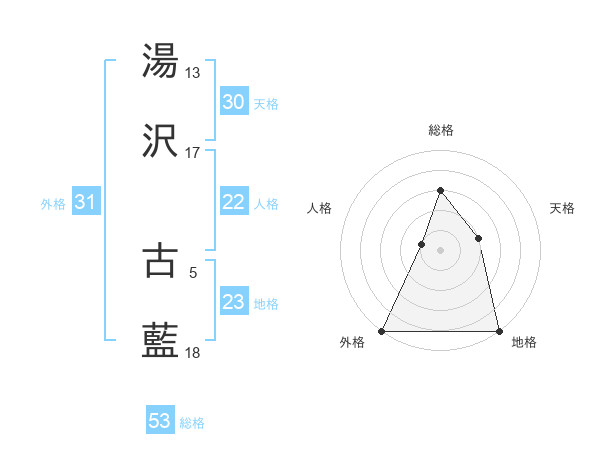 湯沢 古藍さんの外格は31画の5点!