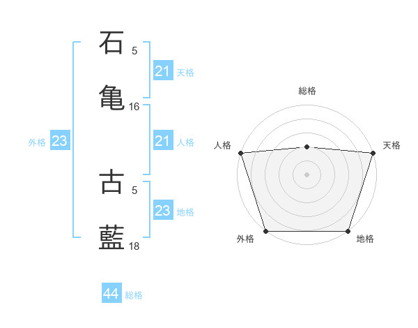 石亀 古藍さんの天格は21画の5点!