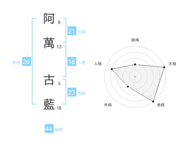 阿萬 古藍さんを姓名の画数から五運を鑑定