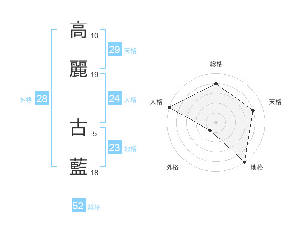 高麗 古藍さんの総格は52画の4点!
