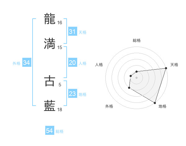 龍満 古藍さんを姓名の画数から五運を鑑定