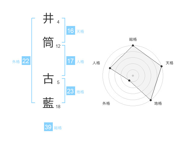 井筒 古藍さんを姓名の画数から五運を鑑定