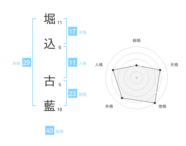 堀込 古藍さんの地格は23画の5点!