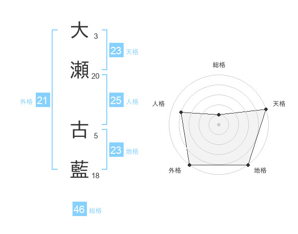 大瀬 古藍さんの天格は23画の5点!