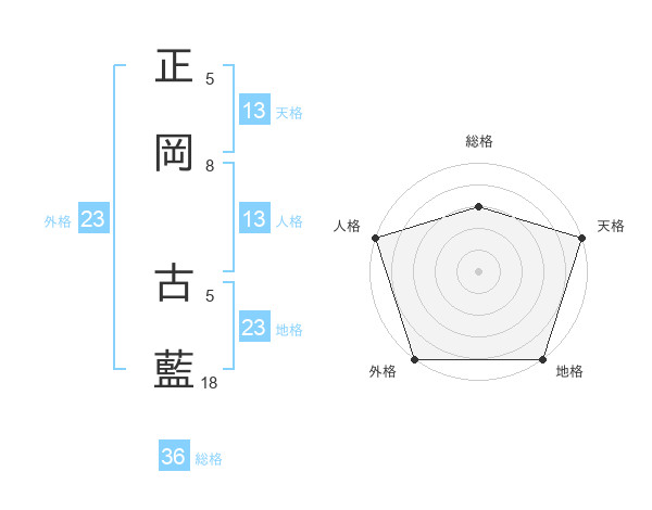 正岡 古藍さんを姓名の画数から五運を鑑定