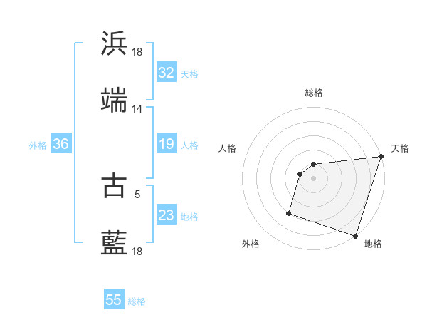 浜端 古藍さんの天格は32画の5点!