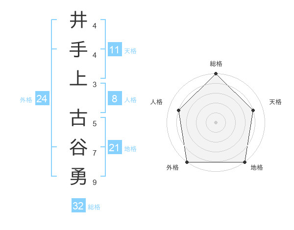 井手上 古谷勇さんの総格は32画の5点!
