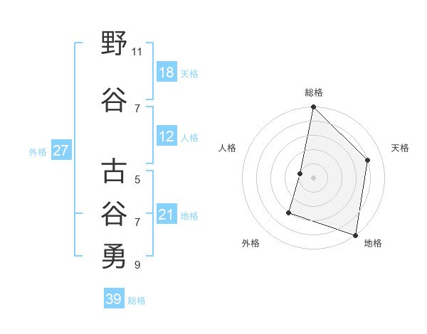 野谷 古谷勇さんを姓名の画数から五運を鑑定