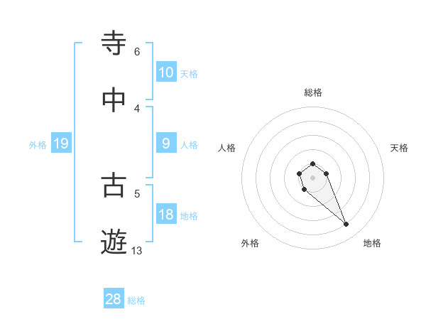 寺中 古遊さんを姓名の画数から五運を鑑定