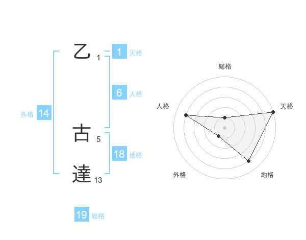 乙 古達さんの天格は1画の5点!