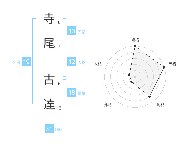 寺尾 古達さんの総格は31画の5点!