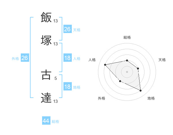 飯塚 古達さんの天格は26画の2点!