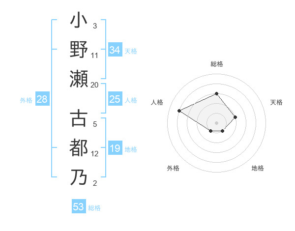 小野瀬 古都乃さんを姓名の画数から五運を鑑定