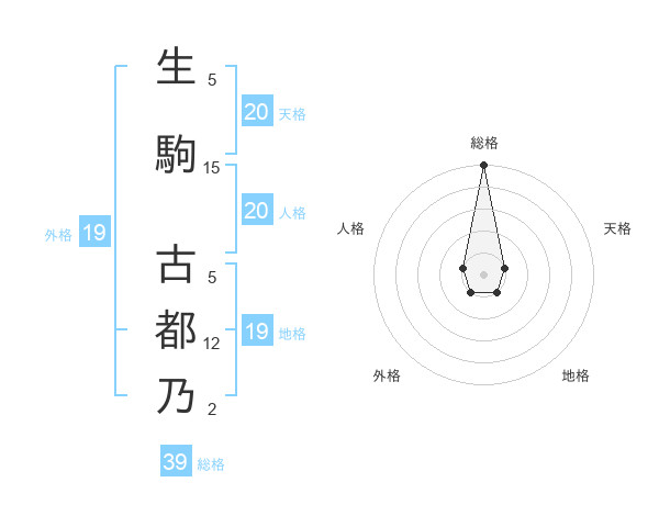 生駒 古都乃さんの総格は39画の5点!