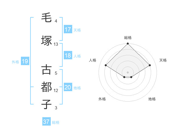 毛塚 古都子さんを姓名の画数から五運を鑑定