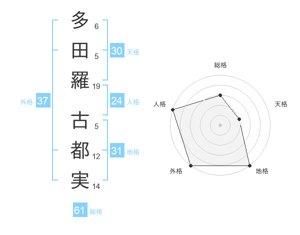 多田羅 古都実さんを姓名の画数から五運を鑑定