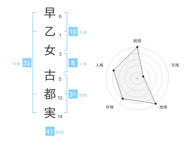 早乙女 古都実さんを姓名の画数から五運を鑑定