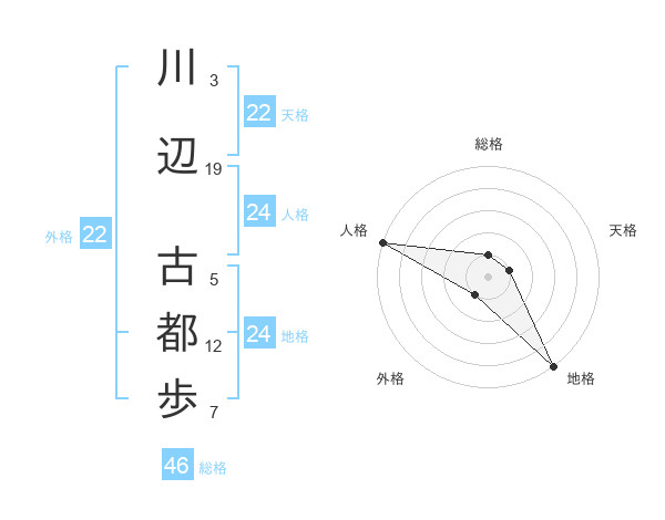 川辺 古都歩さんの総格は46画の1点
