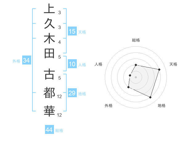 上久木田 古都華さんを姓名の画数から五運を鑑定