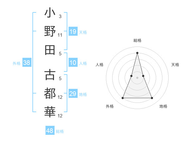 小野田 古都華さんを姓名の画数から五運を鑑定