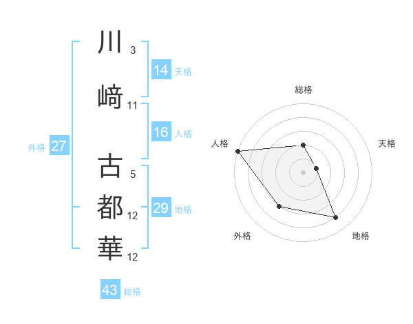川﨑 古都華さんを姓名の画数から五運を鑑定