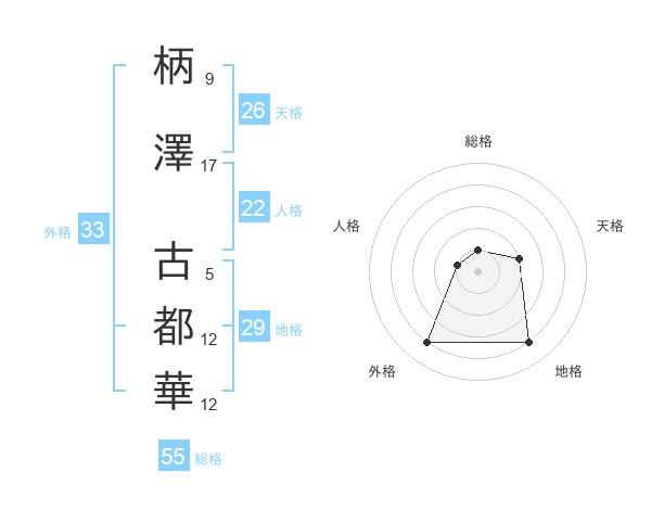 柄澤 古都華さんを姓名の画数から五運を鑑定