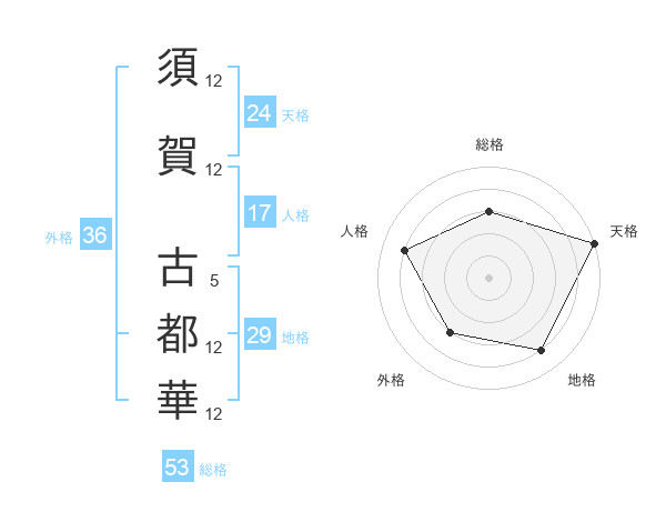 須賀 古都華さんを姓名の画数から五運を鑑定