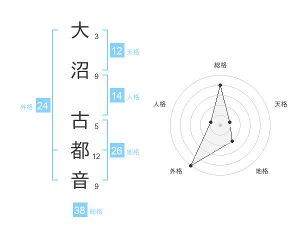 大沼 古都音さんを姓名の画数から五運を鑑定