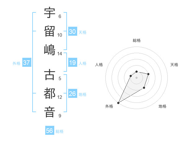 宇留嶋 古都音さんを姓名の画数から五運を鑑定
