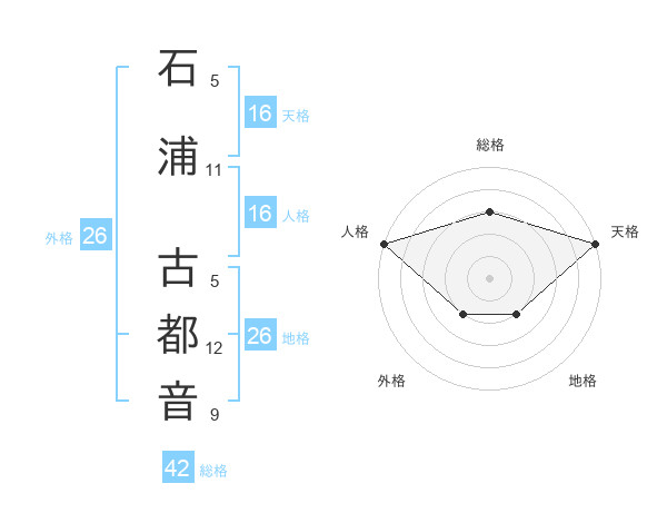 石浦 古都音さんを姓名の画数から五運を鑑定