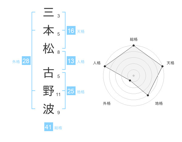 三本松 古野波さんの総格は41画の5点!