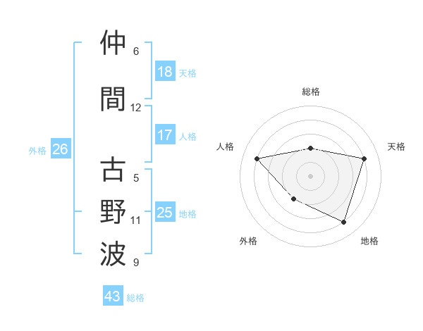 仲間 古野波さんを姓名の画数から五運を鑑定