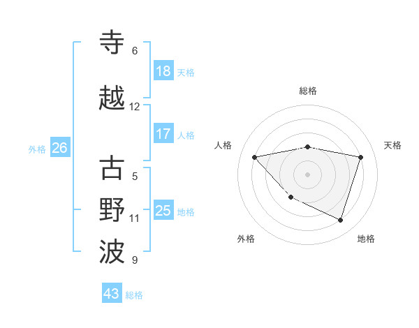 寺越 古野波さんを姓名の画数から五運を鑑定