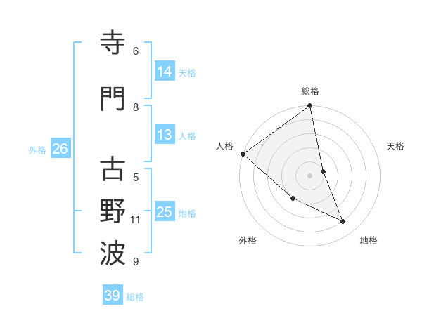 寺門 古野波さんを姓名の画数から五運を鑑定
