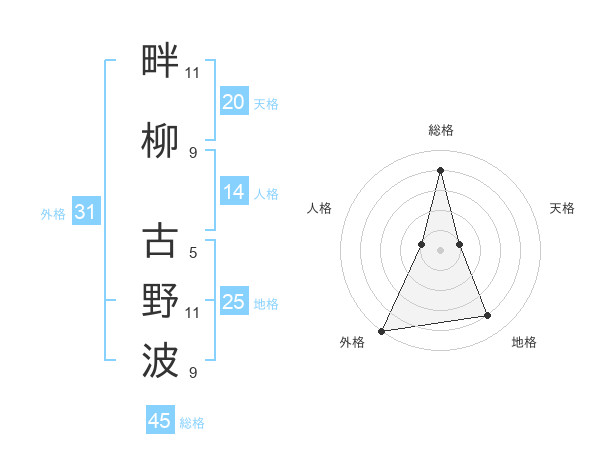 畔柳 古野波さんを姓名の画数から五運を鑑定