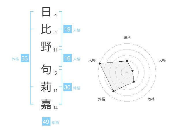 日比野 句莉嘉さんを姓名の画数から五運を鑑定